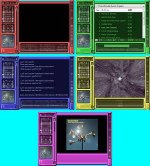 D3 ver1.06 2015/09/20 更新版UP (2005/07/01初版UP) WMPの標準スキン「Corporate」風な感じで作ってみました。 各ウィンドは切替式でビデオor視覚エフェクト、プレイリスト、歌詞、アルバムアートになります。 |